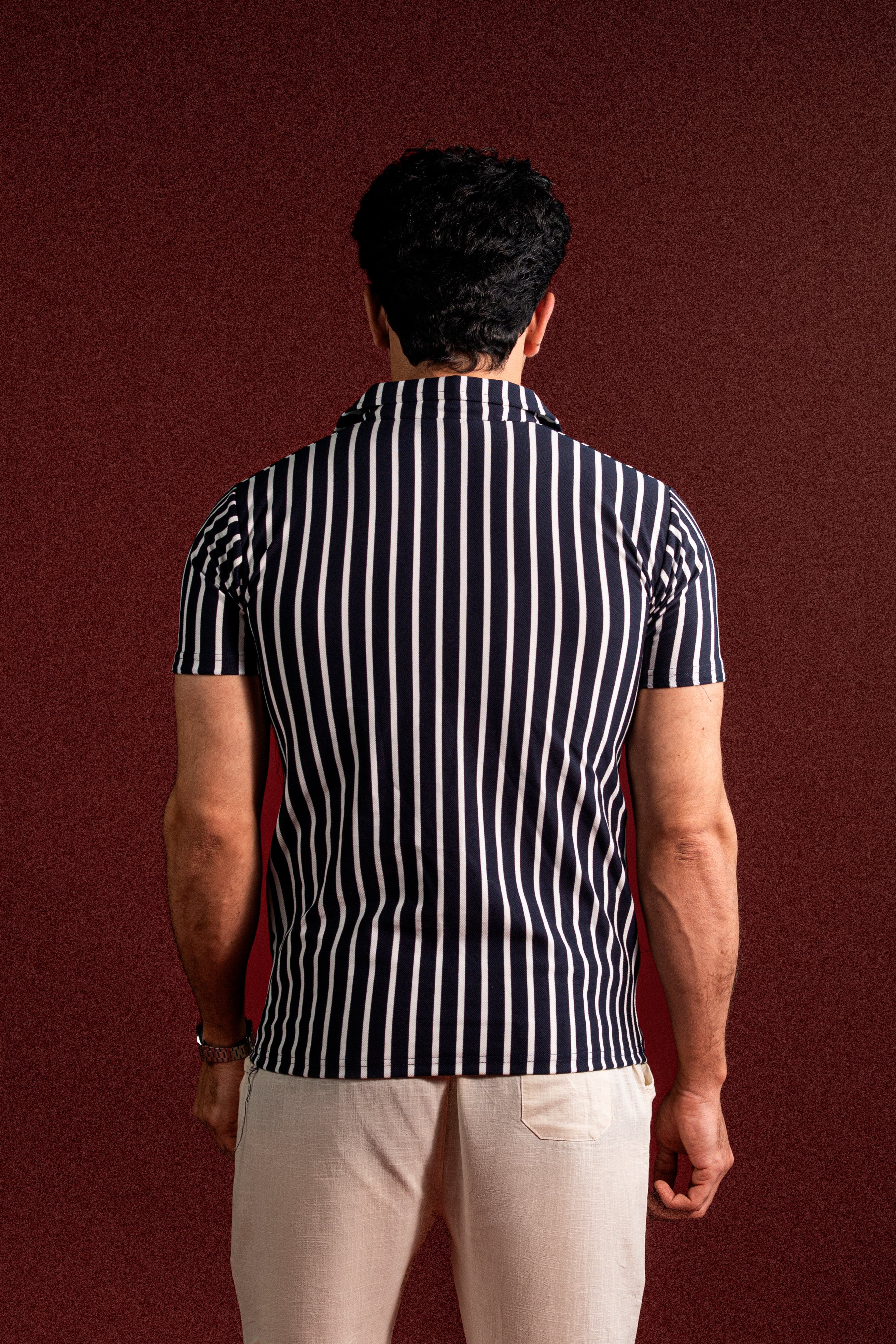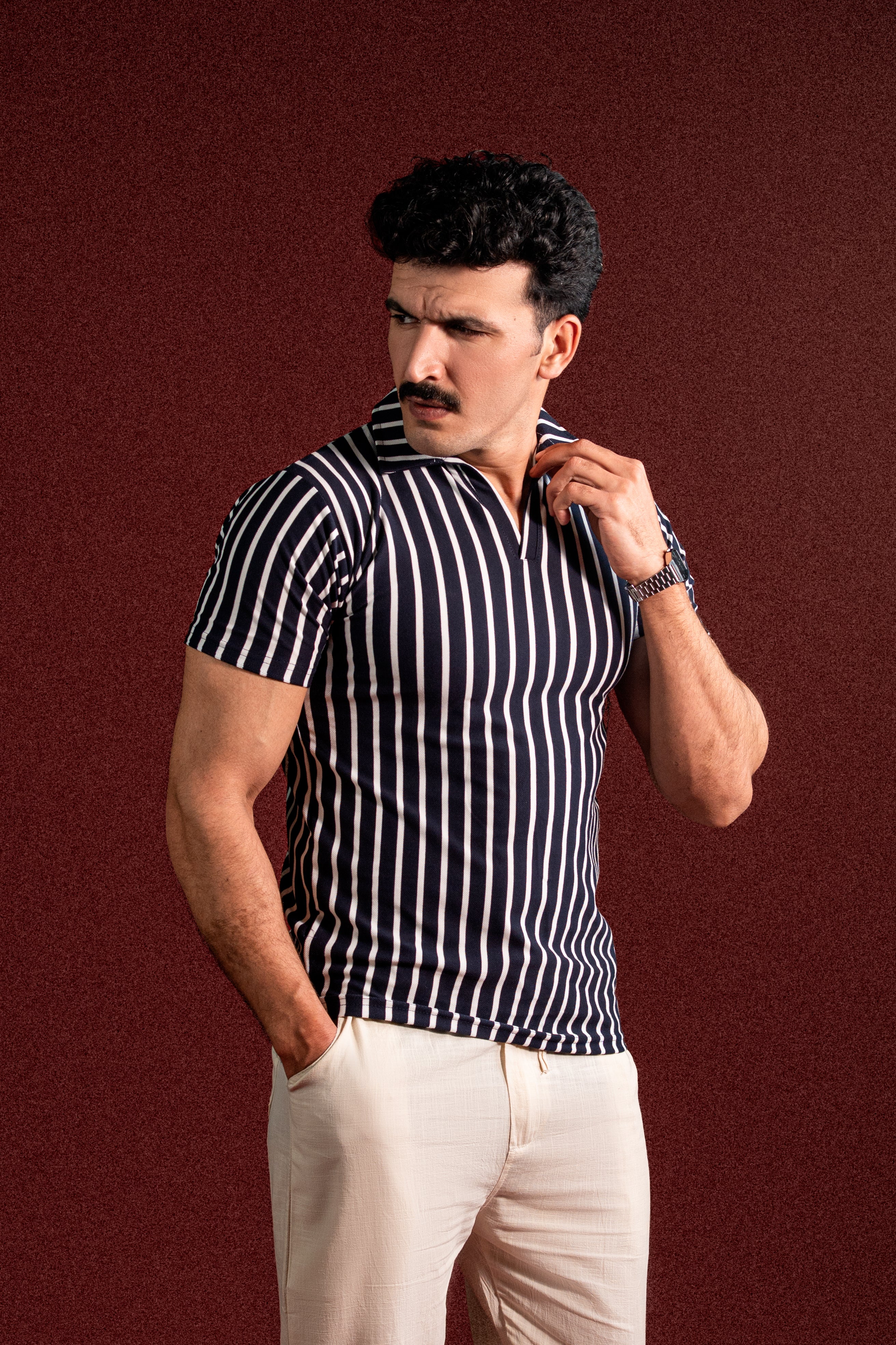 Dive into 2026's preppy-sport wave with the Ostrich Navy Stripe Polo – a crisp, heritage-inspired essential in deep navy with bold white horizontal stripes. This short-sleeve polo captures vintage rugby elegance with a refined collar, button placket, and breathable fabric for all-day comfort and sharp drape. Whether tucked into chinos for office polish, paired with denim for weekends, or layered under a blazer for elevated casual, it channels runway trends in striped polos and sporty-prep (big in SS26 and beyond for timeless, put-together-without-effort vibes). Versatile, iconic, and effortlessly cool.Key Features: