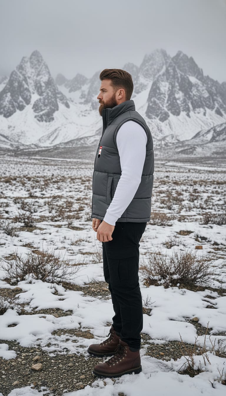 Its sleeveless design adds a modern edge, making it easy to layer over hoodies, sweaters, or full sleeves. Whether you are heading out casually or styling up for winter, this jacket delivers a clean, stylish look that works on every man.