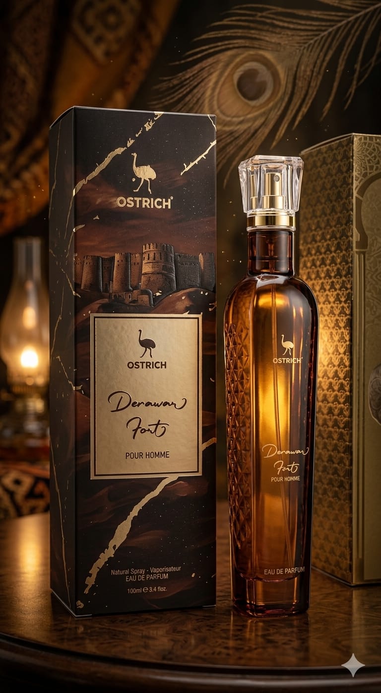 Standing tall amidst the shifting sands, the Derawar Fort is a monument to resilience and desert majesty. Ostrich Derawar Fort (100ml) captures this rugged spirit—a fragrance that is as enduring as the sun-baked walls of history. It is a scent for those who possess an adventurous heart and a steady soul.